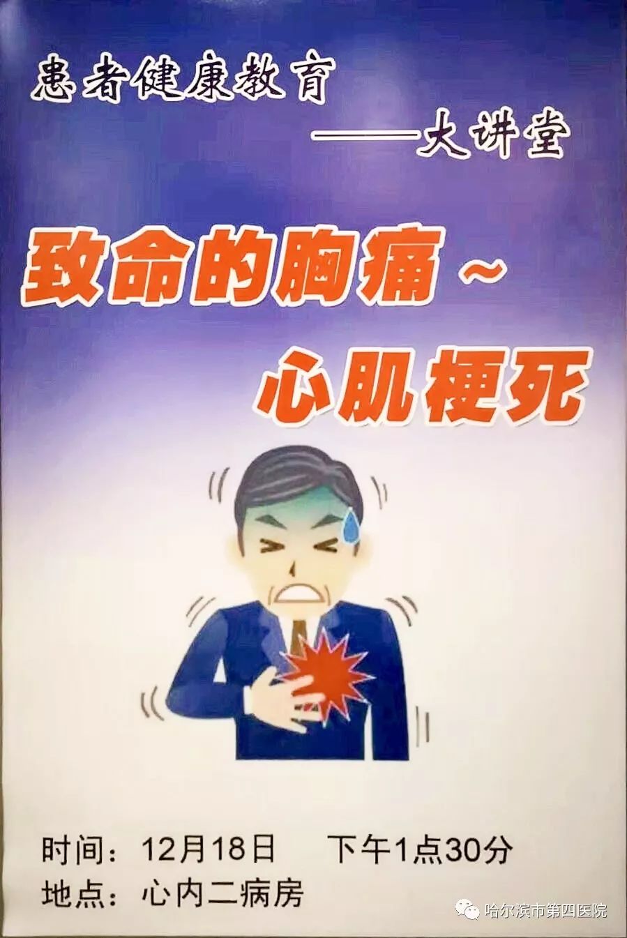 原标题:心讲堂课程预告┃哈市第四医院心内科专家:丧命的胸痛——心肌梗死
