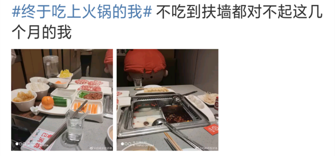 像王浩这样一解禁就去吃火锅的不在少数,据他回想,当天吃一次海底捞太不简单了,餐位只开放了50%,本认为人会比较少,没想到排队等了一两个小时。“不过也很高兴,堂食的火锅便是好吃,即便买了底料在家里自己煮都煮不出来堂食的滋味。点餐的时分看啥都想吃,不知不觉就点多了,吃到最终连腰都直不起来了,我觉得即便撑死了,在死之前我也是夸姣的。”