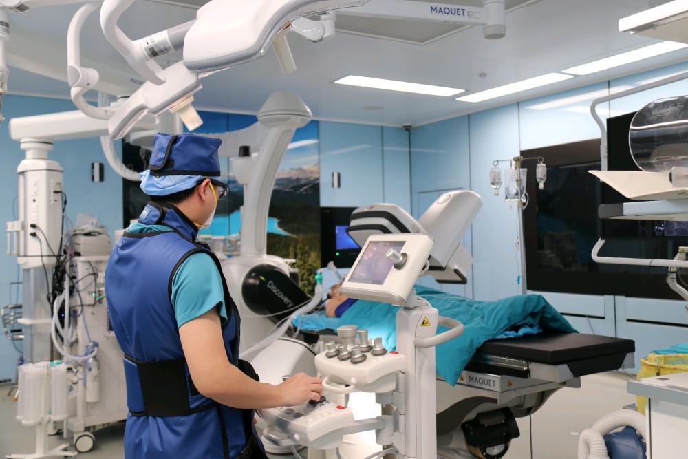 “钢丝移位会导致9.5%的患者定位失利。”乔坤表明,现在就有个“秘密武器”能处理这个难题。市三医院的复合手术室是手术室中的“航空母舰”,有一台搭载了全国首台DiscoveryIGS7OR体系的数字减影血管造影机(DSA)。这相当于把CT室“搬”进了手术室,把术前定位变成了术中定位,患者不必再来回跑,定位+手术“一站式”处理。